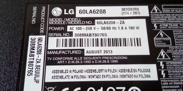 Tv Type and size LG 60inch 60LA6208
